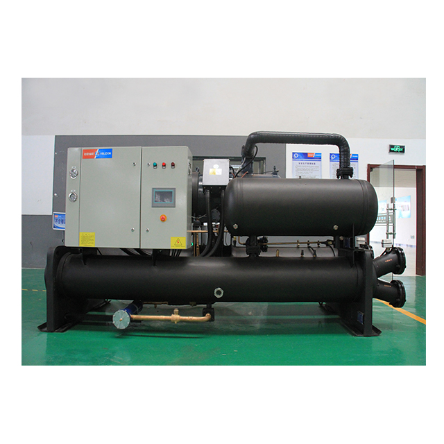 產品簡介:壓縮機選用雙螺杆壓縮機,采用先進的第三代高效率5齒對6齒的螺旋轉子,螺旋轉子經過高精度CNC加工而成,平衡良好,振動小,噪音低,提高熱效率10-12%,省電25%。機組蒸發器采用均淋降膜式結構設計,比普通蒸發器效率提高20%-30%,降膜式蒸發器在部份負荷情況下具有好的換熱性能。